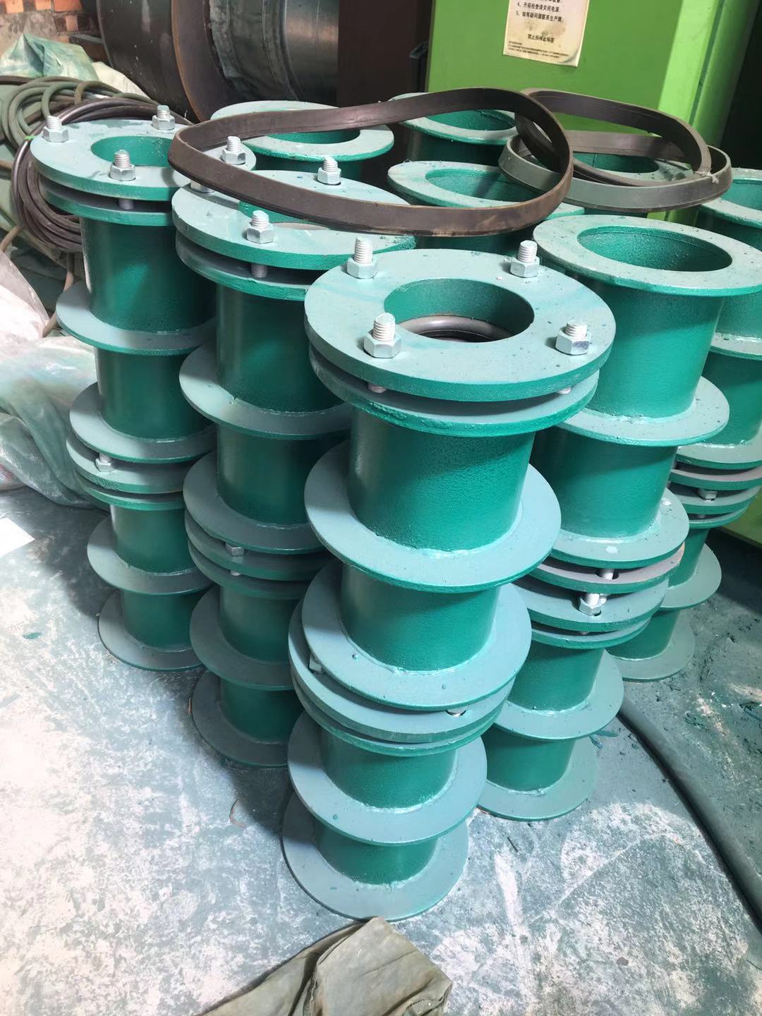 柔性防水套管選用添充原材料有什么;用在有冰或別的液體根據(jù)的管路選用密閉式防水套管,在生產(chǎn)制造制做和選用的密閉式零配件上都是有嚴苛的技術(shù)標準。柔性防水套管在設(shè)計圖上面舍的有密封環(huán),也就是在防水套管的背河面有旋蓋、地腳螺栓,內(nèi)腔設(shè)定的有密封環(huán)當?shù)啬_螺栓卡緊促進旋蓋下滑是密封環(huán)澎漲是管路和防水套管縫隙連接